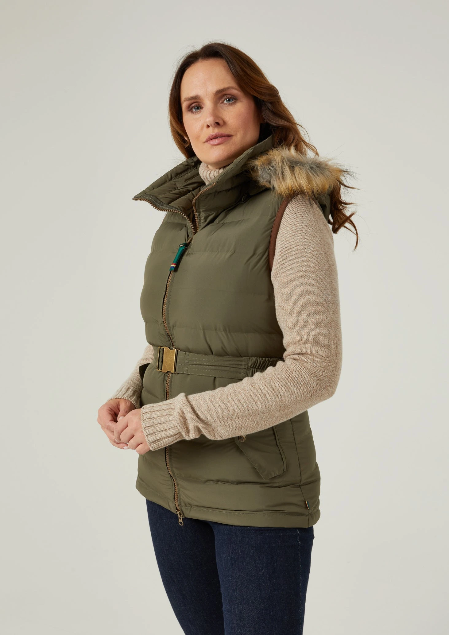 Ladies, welcome to our new Calsall quilted gilet. Pop this on and you’ll feel like you’re having a giant hug without the weight; it’s super light but incredibly warm. It has a water repellent 100% luxuriously soft recycled Polyester outer and contains renewably sourced DuPont® Sorona thermal filling for ultra-lightweight insulation. This fabulous gilet offers so much layering potential. You can adjust the waist for a really comfortable fit, it has a detachable faux fur arctic hood for a lighter option on a warmer day and a two-way zipper so you can open the gilet at the top and bottom.